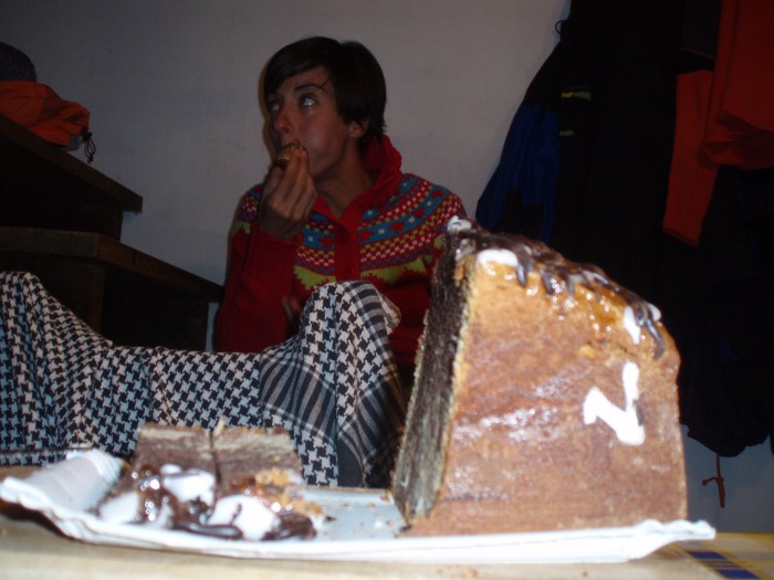 A las mañanas he pensado que no podría moverme en días, pero es lo que tiene ir en grupo, que lo que toca toca. Así que a desayunar, botas y al lío. A pesar de estar destrozada e ir como Chiquito de la Calzada, he podido picarme un poco y echar unas risas bajando como las cabras y tirándonos por algún trozo de nieve o nevero que había.