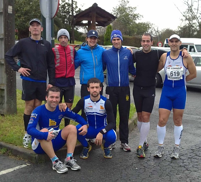 1ª en la Herri Krosa de San Antontxu. 9,8 km para empezar bien la mañana, a buen ritmo, 37 min, a 3:45 de ritmo, en un circuito bastante duro. Nos hemos juntado muchos de mi equipo. Creo que éramos unos 12 en total, más de los que salimos en la foto. En general, todos nos hemos vuelto contentos a casa. A parte de nosotros había en la línea de salida muchos más triatletas: Iban Rodriguez, Gorka Bizkarra, Mikel Elgezabal…