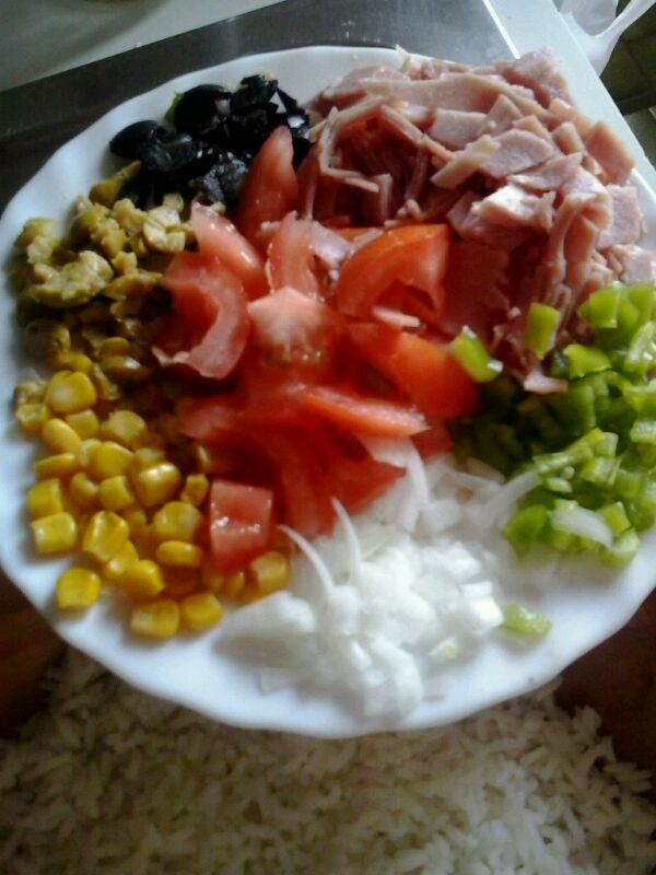 Se le añade al arroz todo lo picado y el maiz y listo.