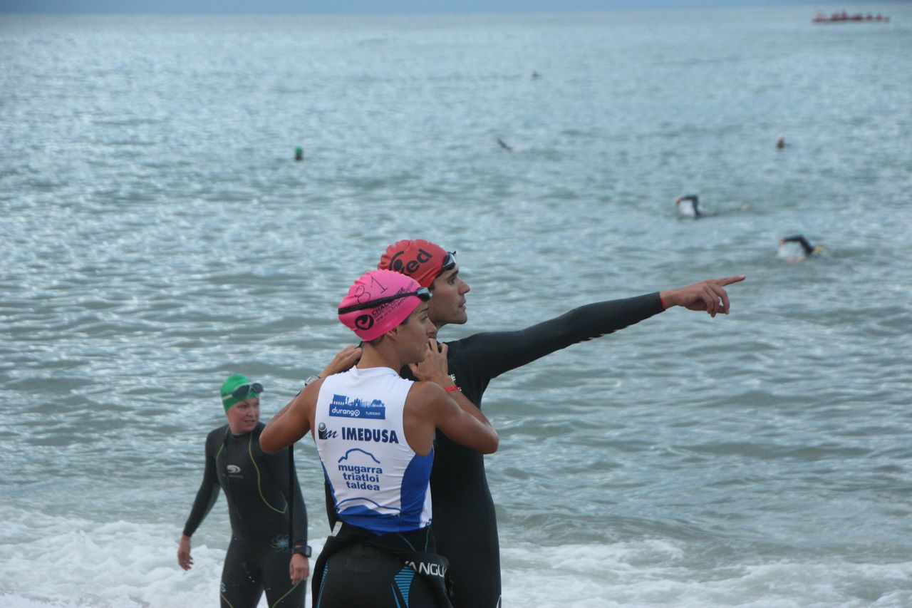 Sin quererlo había llegado las 5:30 de la mañana. Desayuno y últimos preparativos. Parecía que no llovía. Fuimos en bici hasta la salida. El día anterior no la pudimos dejar por el temporal. Un poco de charleta con los compañeros del mugarra y se iba acercando la hora. Nos pusimos el neopreno y a calentar un poco.