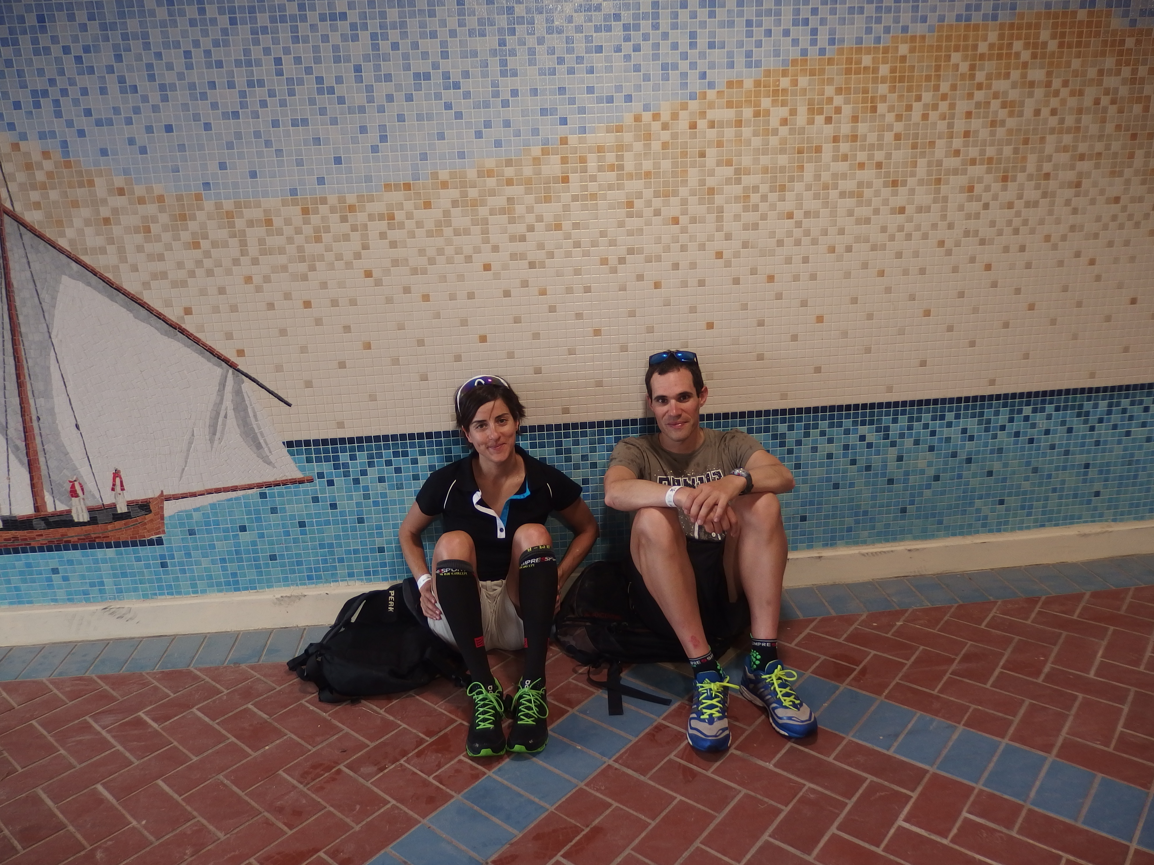 Me bajé de la bici y me encontré a Rober, había tenido un día malo también y estaba con una gran cara de preocupación por mi retraso. Le dije que me había caído y me metí a cambiarme. Los dolores del golpe aún no habían salido y veía que podía acabar. Había hecho esos 200km eternos en bici así que ahora tenía que conseguir disfrutar. Además tenía el aliciente del premio. Así que me calcé las zapatillas y a por ese paseo marítimo.