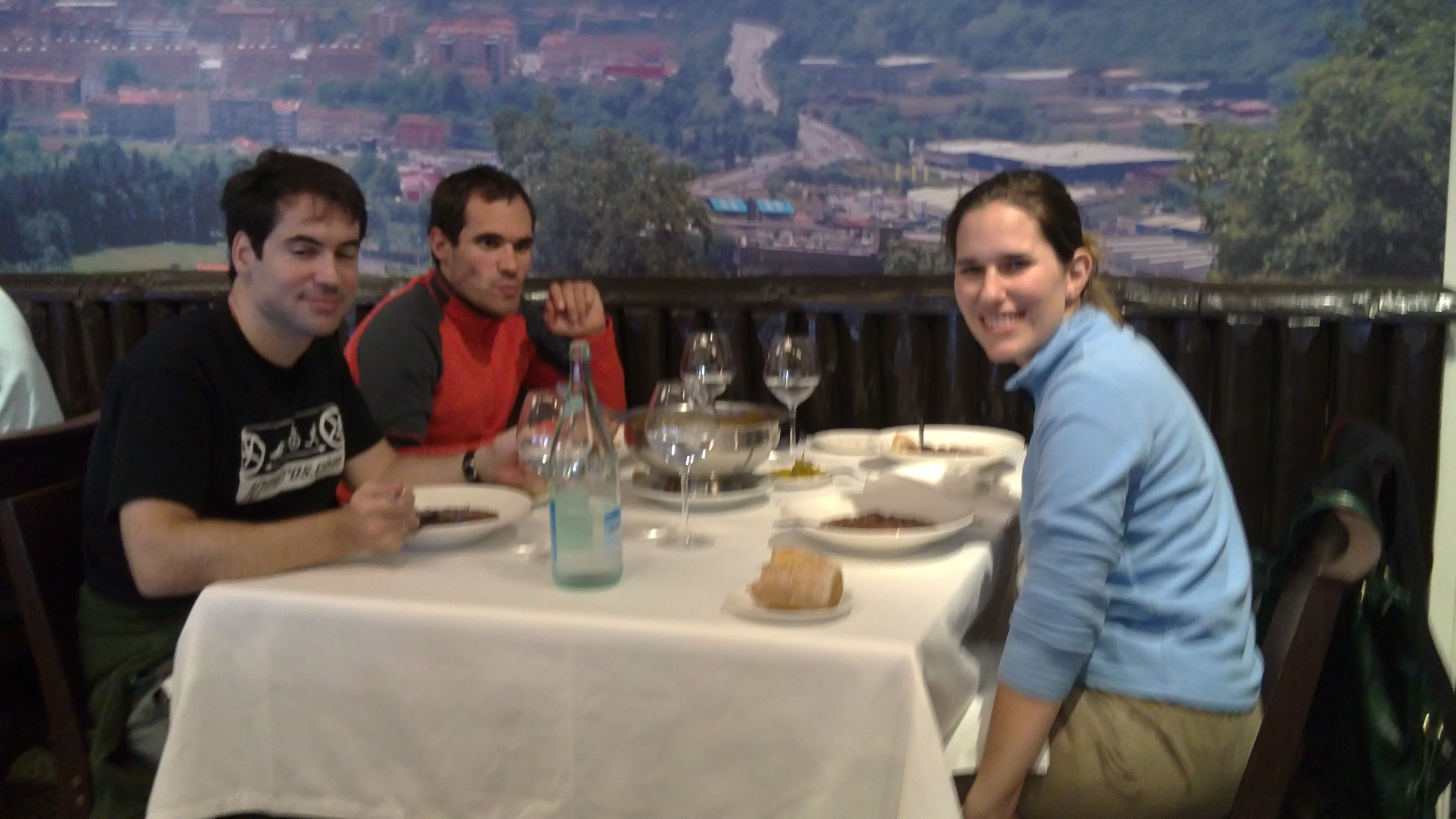 Después de la maratón nos hemos ido con los del equipo y sus familias de sidrería a celebrarlo comiendo alubias y txuleta.
