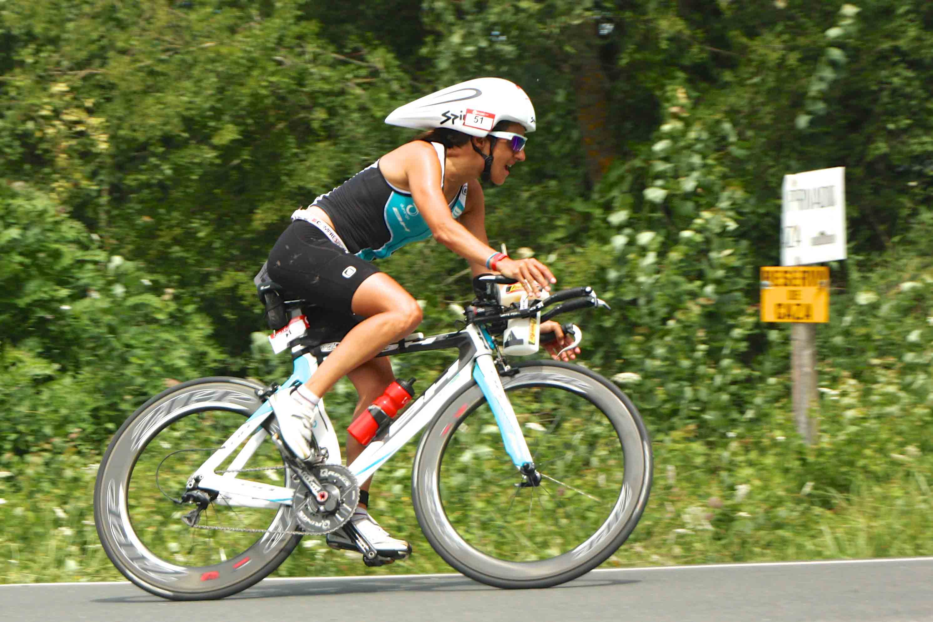 Bocinazo y 3800 metros por delante. Poco a poco fui cogiendo ritmo. La mar estaba muy tranquila y se nadaba bien. Más o menos en los tiempos esperados toqué tierra. 180 kilómetros estaban por delante. Comencé a un ritmo bastante tranquilo. El miedo y la incertidumbre estaban presentes. Miedo a pasarme y pagarlo en la maratón. En Malgrat, primer giro de 180º decido subir el ritmo. Voy concentrada (comiendo) y bebiendo. El sol sale de entre las nubes y el día es perfecto. Me quedo mosqueada porque no le he visto a Rober, pero igual se me había pasado. Cuando llego de nuevo a Calella me cantan tiempos, pero yo tengo otra cosa en mente, que es como va Rober. Me dicen o entiendo que el 15 y que Itsaso a 1′. Yo sigo a lo mío y van pasando los kilómetros. No le veo y me doy cuenta de la que va la 15 soy yo, han esquivado el tema. No sabía lo que le habría pasado pero algo seguro que sí. Tampoco le encontraba en el arcén. O se me había vuelto a pasar o le había pasado algo en el agua. Había muchos kilómetros para pensar. En la segunda vuelta veo a Rober y me dice lo del pinchazo. Casi me quedo hasta tranquila, pero me entra una tristeza… Me canta 4′ con Itsaso y 6′ con Ruth. Me concentro en la posición y en comer. Toca empezar a comer sólido, me había preparado un sandwich bien comprimido para que ocupara poco y fue una idea malísima. El primer mordisco tuve que escupir o me ahogaba. Pero había que coméserlo. En bici tenía que comer todo lo pensado, así que a bajar el ritmo, refrescarse la boca y a poquitos para dentro. Pasan los kilómetros y ya voy más cómoda acoplada que sin acoplarme. Último giro y 20 kilómetros para la transición.